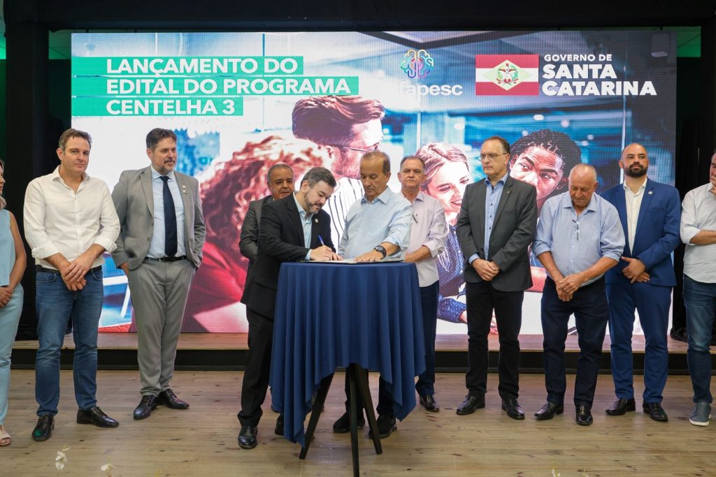 Iniciativa que nasceu em Santa Catarina, o programa Centelha chegou a sua terceira edição. Durante o evento, o governador anunciou o edital de R$ 4 milhões em recursos para apoiar projetos inovadores que darão origem a novos negócios inovadores. O documento foi assinado pelo governador, secretário Usuy e o presidente da Fundação, Fábio Pinto. “Esse é um edital voltado à inovação e ao empreendedorismo. Teremos mais de 40 empresas selecionadas, que vão receber incentivos para a própria empresa e, também, para bolsas e fomento de novas ideias. O programa é um grande arrecadador de ideias inovadoras e não vai ser diferente nessa edição. O Centelha é uma ideia catarinense, gerida por uma fundação catarinense e que vai impactar toda Santa Catarina”, reforça o presidente.